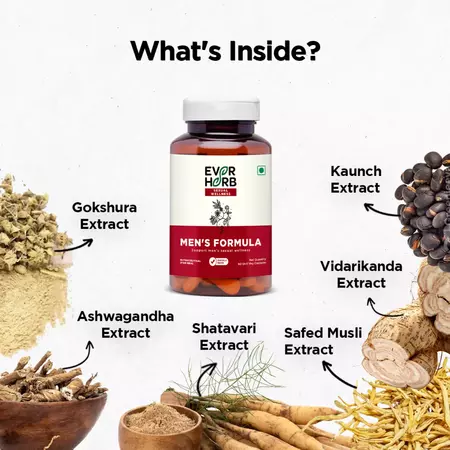 EverHerb Men’s Formula is a unique herbal blend of 100% natural, scientifically proven 6 ayurvedic herbs namely Safed Musli, Shatavari, Ashwagandha, Gokshura, Vidarikanda and Kaunch. These herbs are a health supplement that helps in restoring vigour and vitality in men for ages. It is also useful in building physical strength.